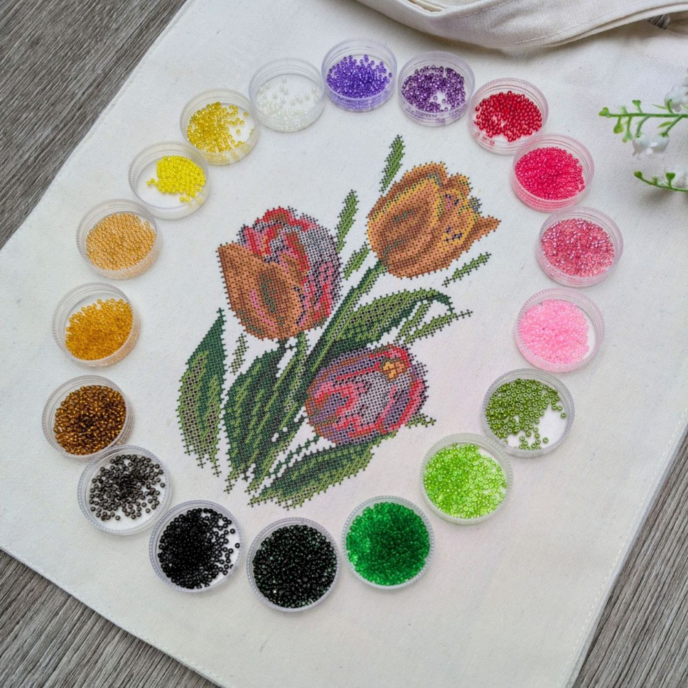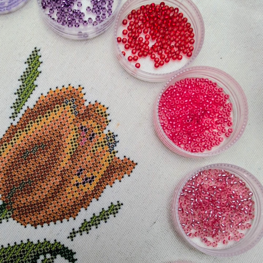 Потрібно 65 грамів бісеру або 18 мотків ниток DMC.