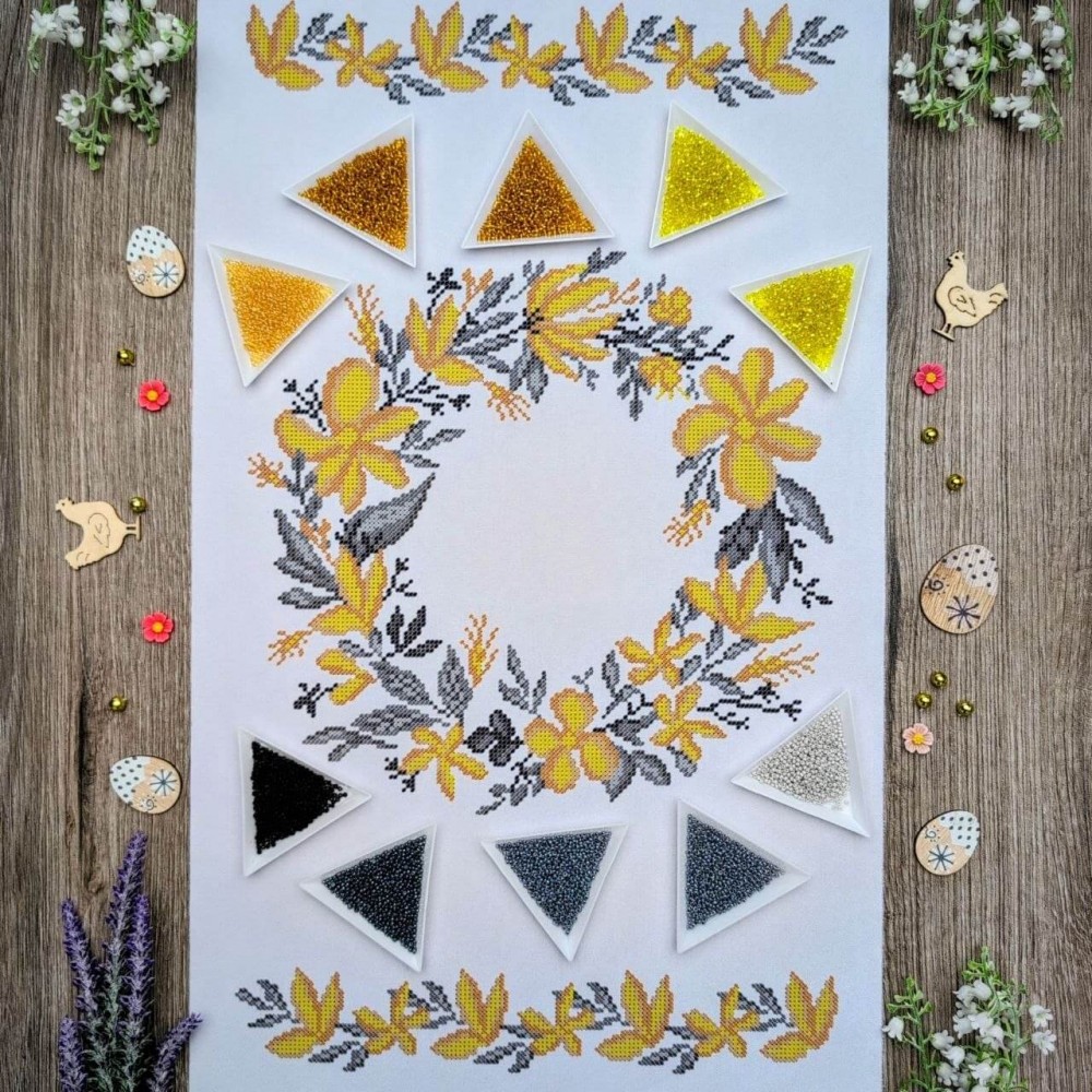 Набір для вишивання пасхального рушника з чеським бісером Preciosa Ornela. Схема надруковані на тканині для подальшої вишивки бісером від Арт Міленіум.