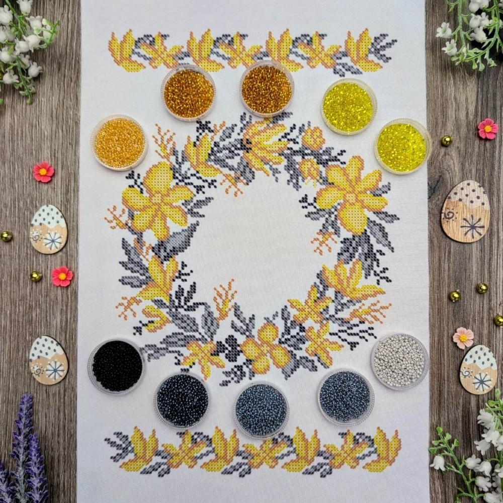 Набір для вишивання дитячого пасхального рушника на маленький кошик з чеським бісером Preciosa Ornela. Схема надруковані на тканині для подальшої вишивки бісером від Арт Міленіум.