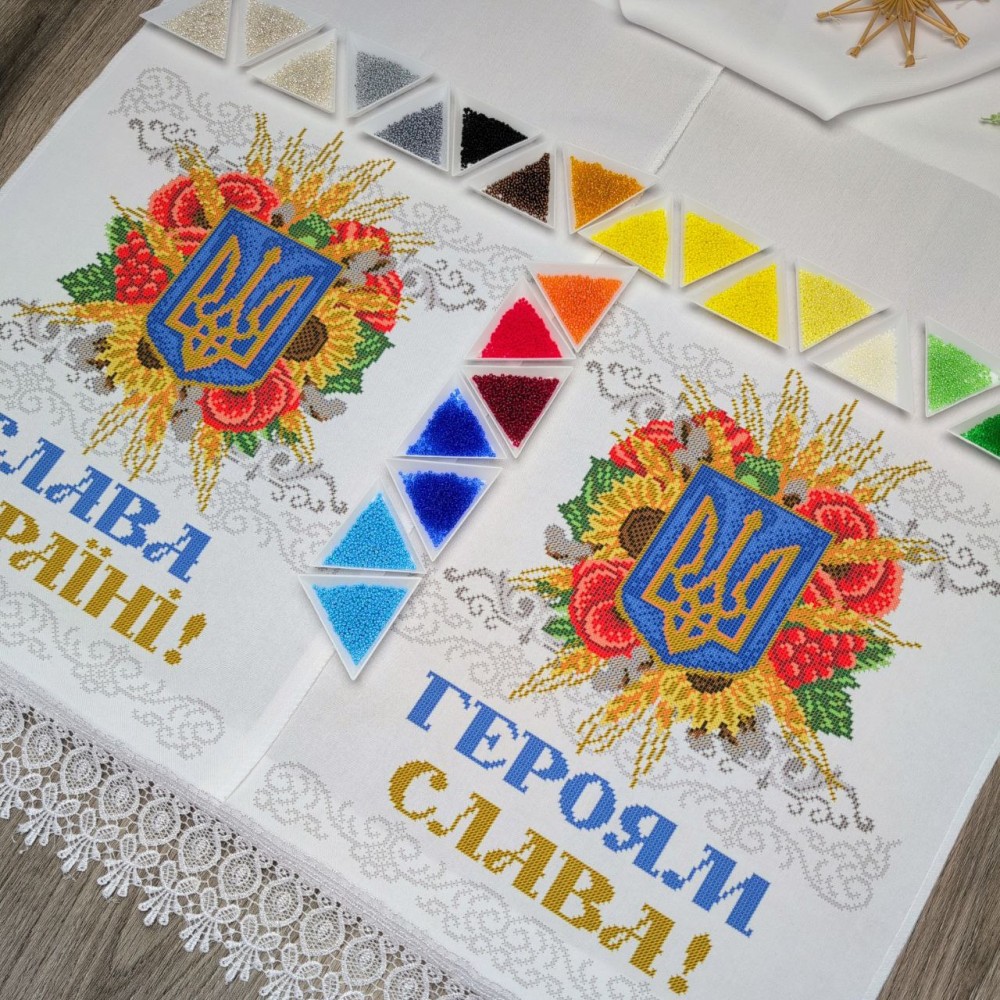 Заготовка рушника з надрукованою схемою під вишивку бісером, нитками, рубкою.