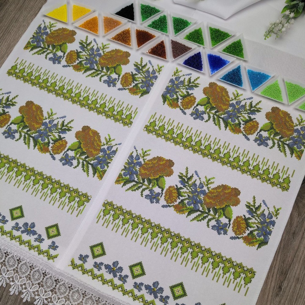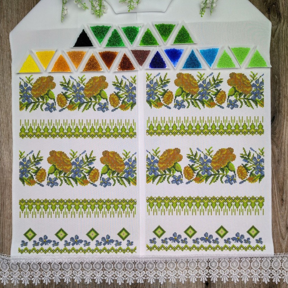 Дуже гарна заготовка. Малюнок "живий". Широкий орнамент дивиться дуже гарно та "багато". Схема нанесена чітко, вишивається легко.