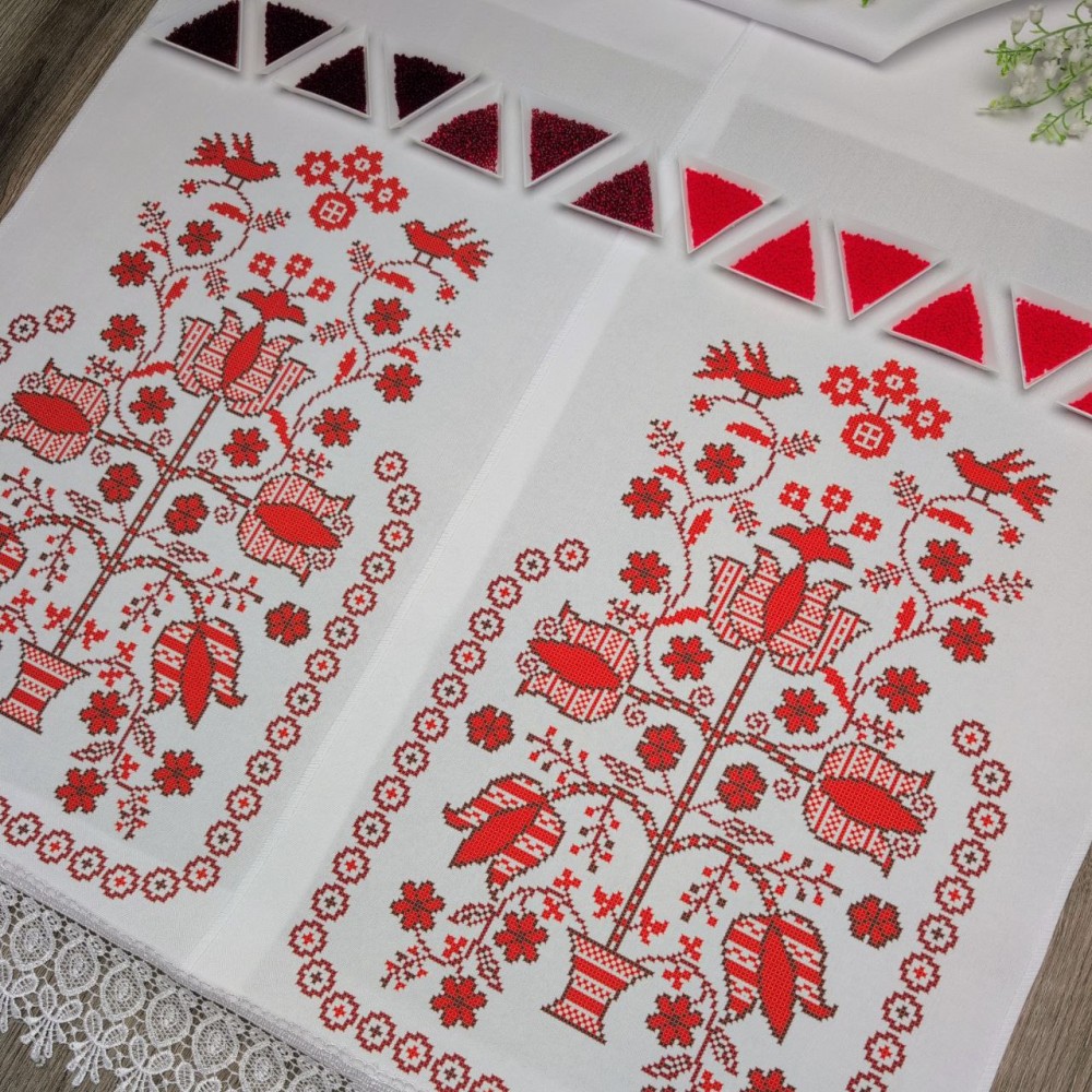 Заготовка весільного рушника з надрукованою схемою під вишивку бісером, нитками, рубкою.