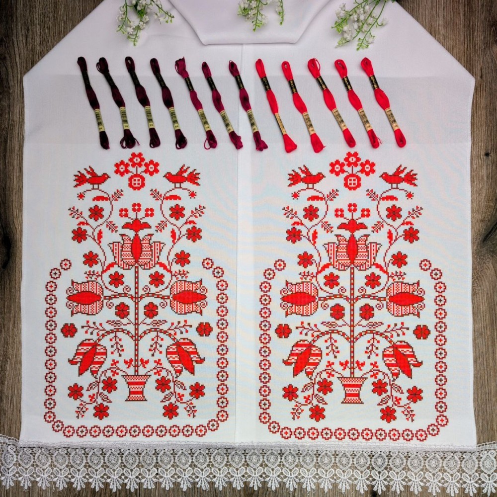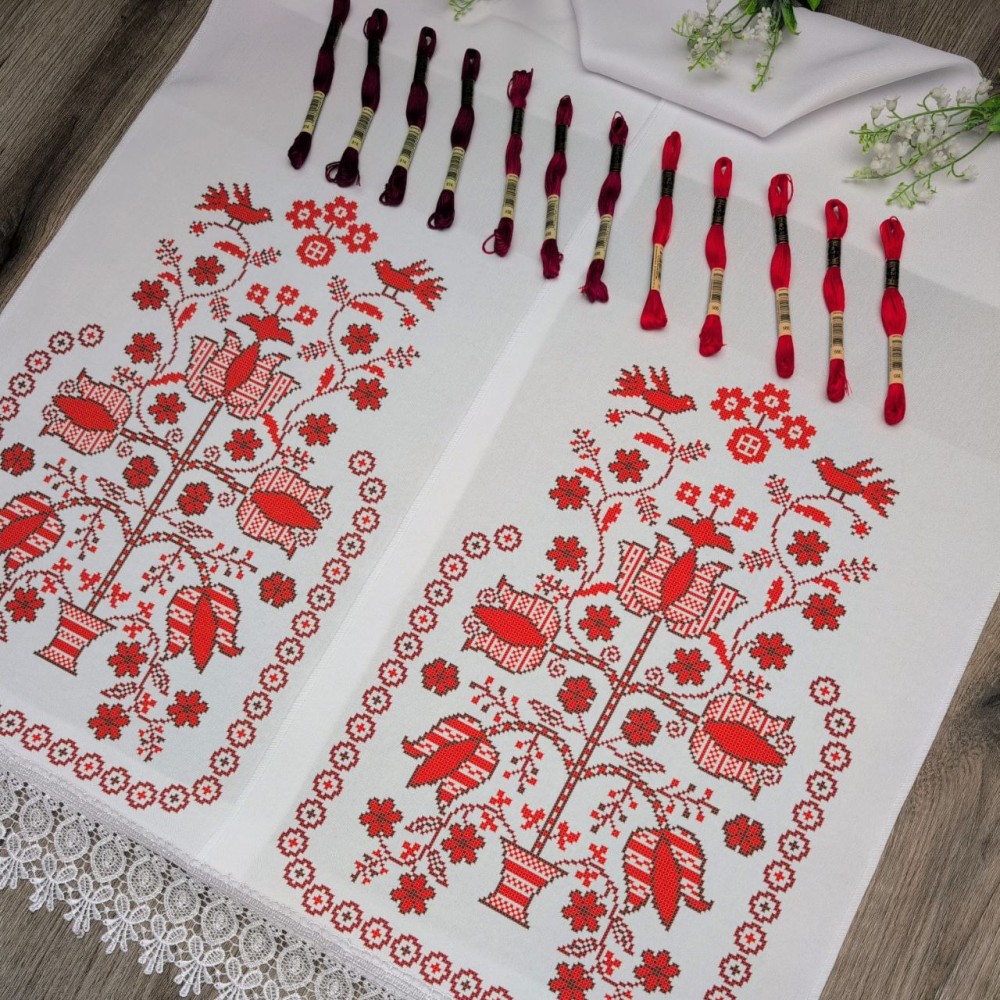 Цей узор — це класичний і один із найпотужніших символів української вишивки, відомий як Дерево Життя (або Древо Роду). Він уособлює структуру всесвіту, безперервність життя та нерозривний зв'язок між минулим, теперішнім і майбутнім.