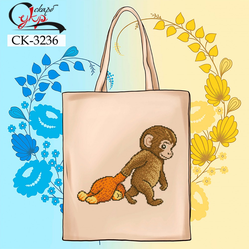 СК-3236 - еко-сумка під вишивку "Мавпеня Панч та його улюблена іграшка"