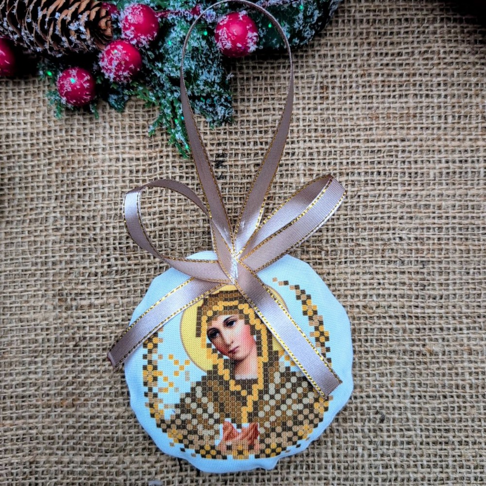 Комплект пошитих новорічних іграшок (прикрас) для вишивання нитками, бісером з нанесеною схемою на тканині. В комплект входить інструкція в якій вказано кольори бісеру і його кількість та рекомендовані номери ниток DMC. Іграшки пошиті, та не потребують додаткових операцій по шиттю.