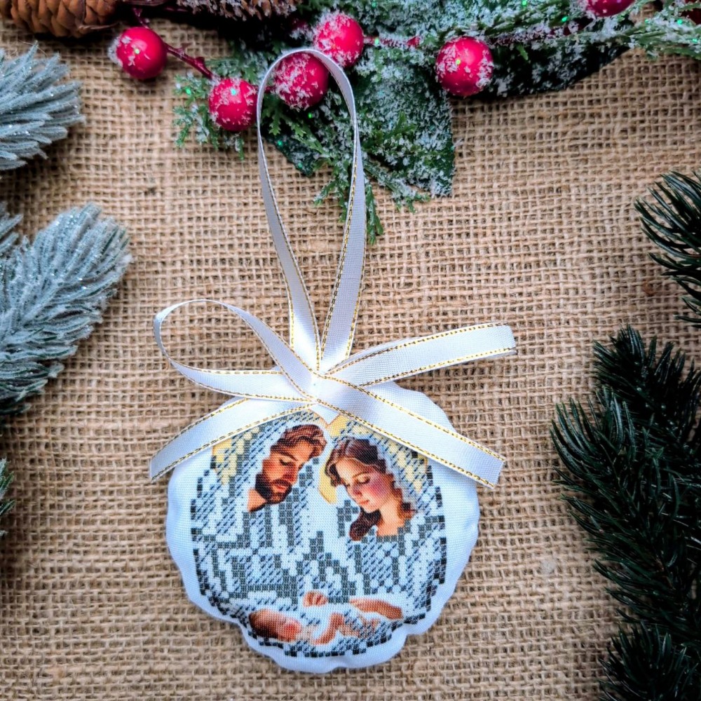 СК-6563 - новорічна іграшка під вишивку "Святе Сімейство" (срібло) (варіант 3)