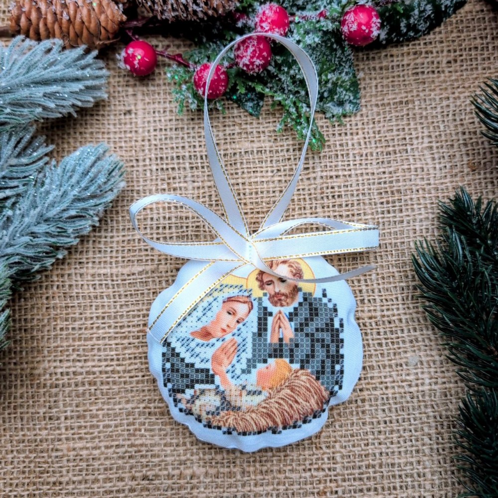 СК-6566 - новорічна іграшка під вишивку "Святе Сімейство" (срібло) (варіант 6)