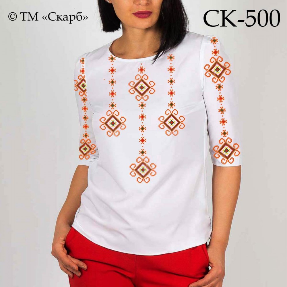 Заготовка жіночої блузки під вишивку "Оранжеві ромбики" СК-500
